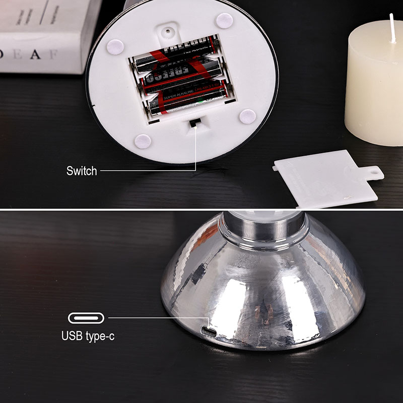 باتری 3 AAAچراغ شمع دکوراتیو سبک اروپایی از فلز و پلاستیک ساخته شده است که بالا و پایین آن از فلز ساخته شده است. قسمت بالایی می تواند شمع های معمولی را برای روشنایی در خود جای دهد و قسمت میانی آن به سبک اروپایی کدو شکل طراحی شده است.