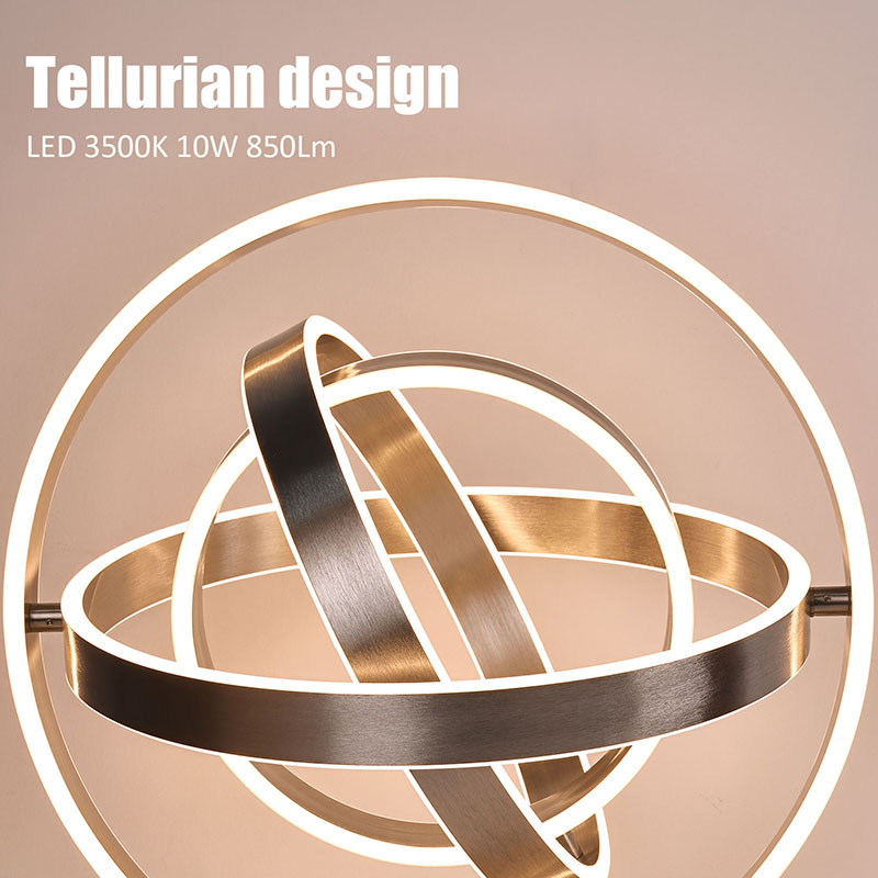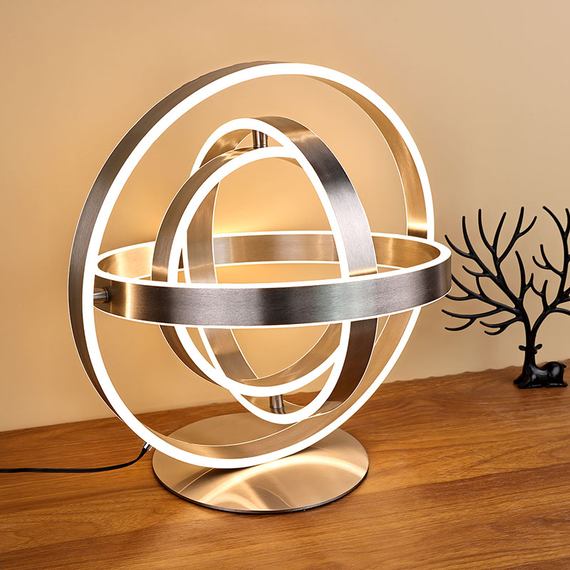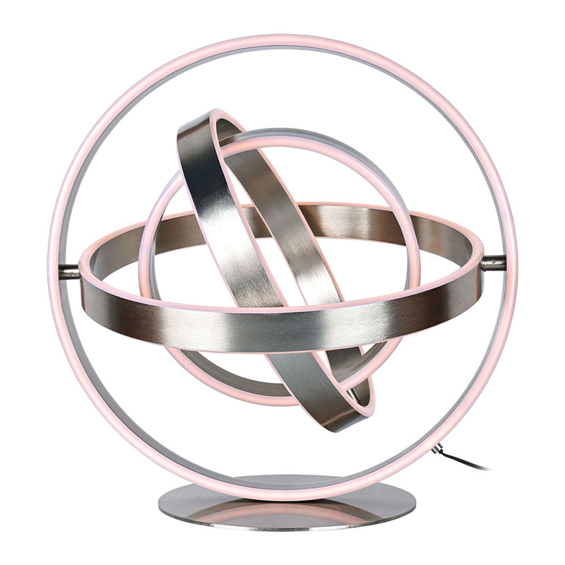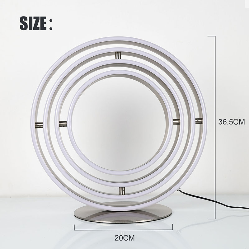 راچراغ رومیزی led نفیساز چندین لامپ LED حلقوی تشکیل شده است، با چراغ های LED بریده شده در هر حاشیه حلقوی. طراحی حلقوی می تواند به شکل کروی بچرخد.