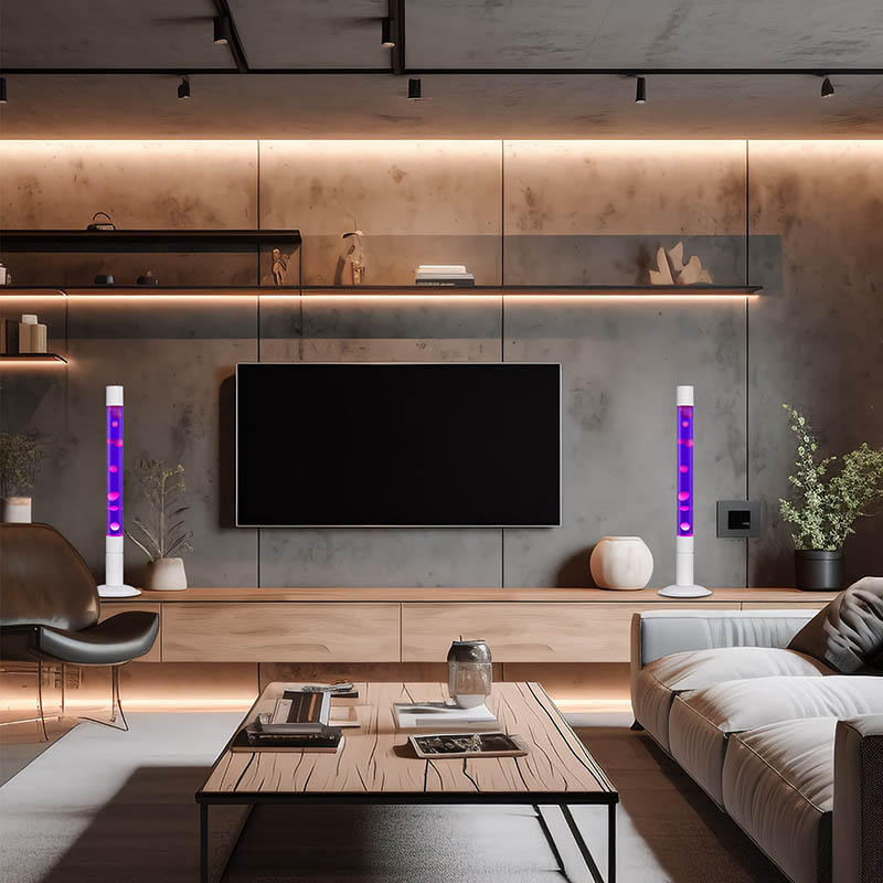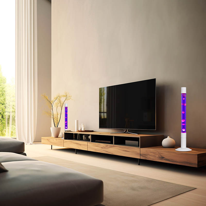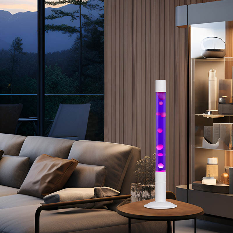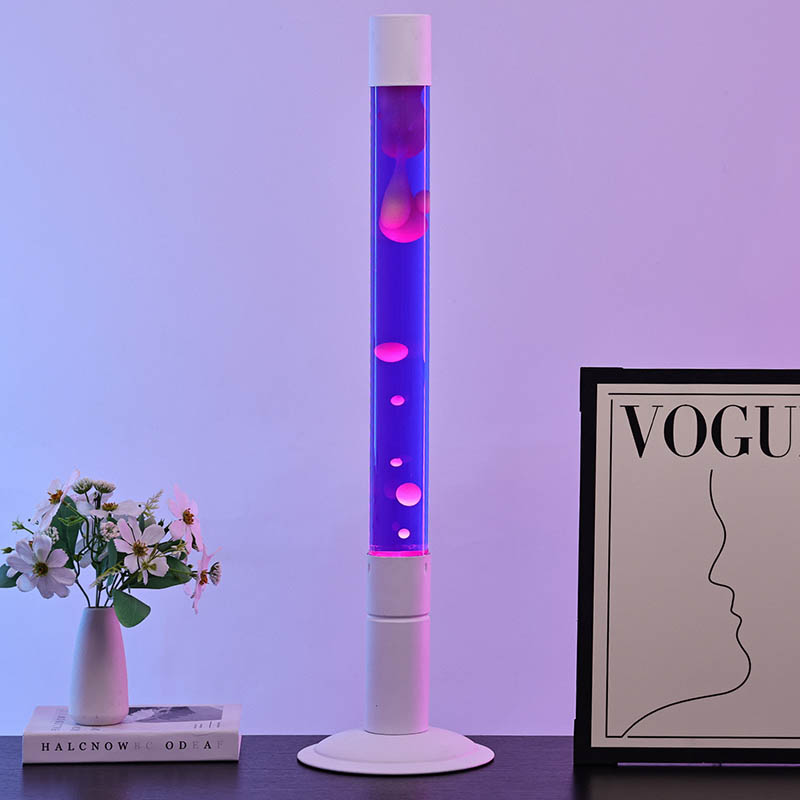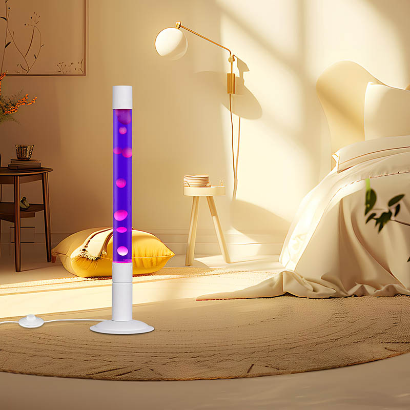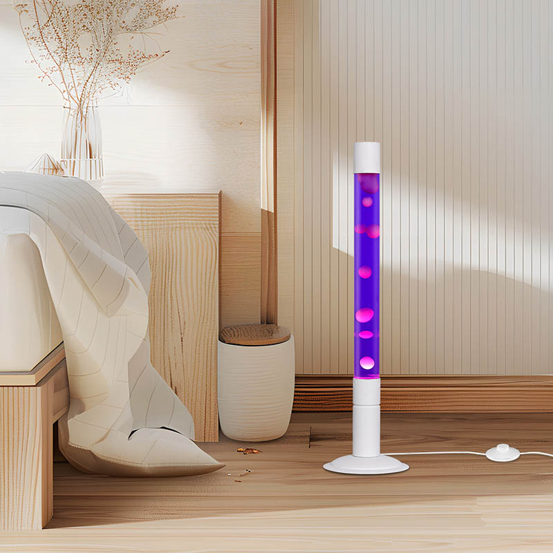 قلب واقعی این لامپ در ویژگی اصلی آن نهفته است: یک لوله شیشه ای بلند و شفاف پر از مایع بنفش مبهم. این مایع ، یادآور یک تالاب آرام در غروب ، زیر نور می لرزد و یک محیط آرامش بخش و مبهم ایجاد می کند. در داخل این لوله ، مجموعه ای از توپ های صورتی و بنفش با لطف و شناور ، حرکات ملایم آنها را فریب می دهد و یک عنصر پویا را به شکل استاتیک لامپ اضافه می کند.