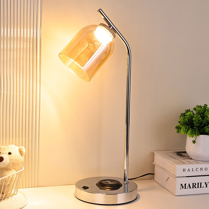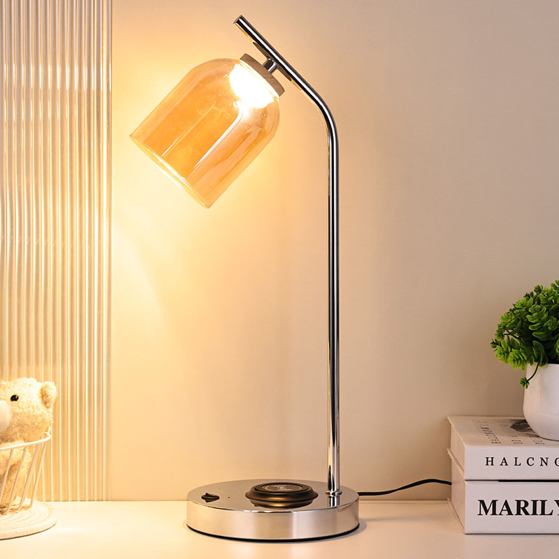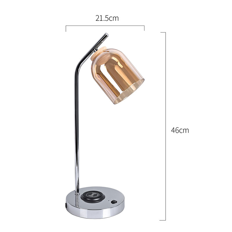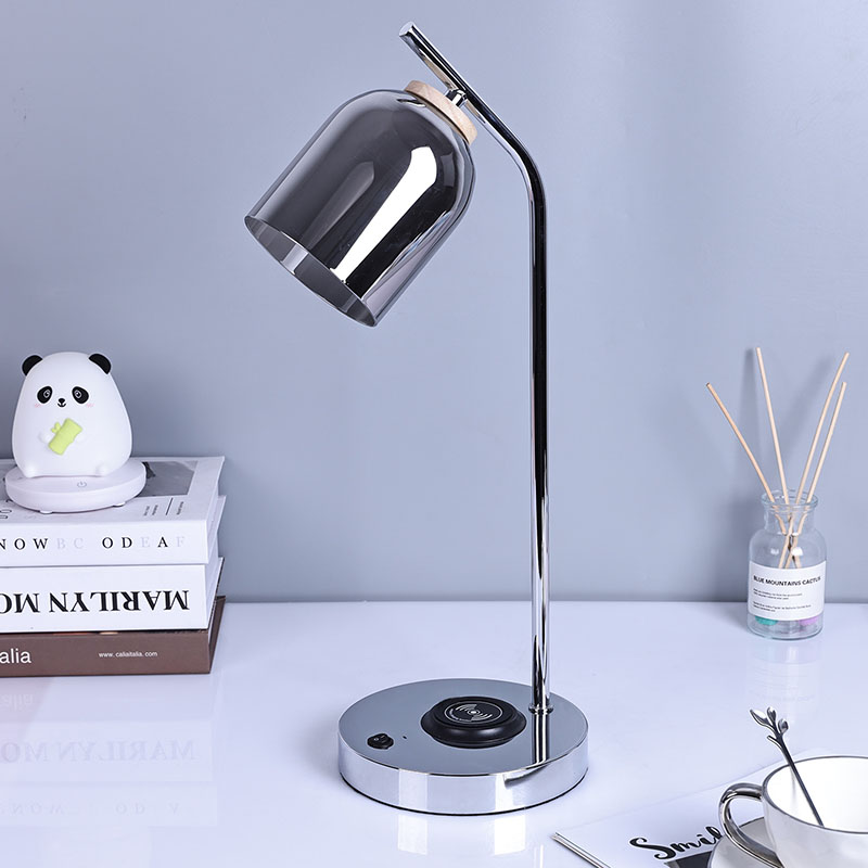 چراغ رومیزی LED QI با سایه شیشه ای ساخته شده با سایه شیشه ای لوکس