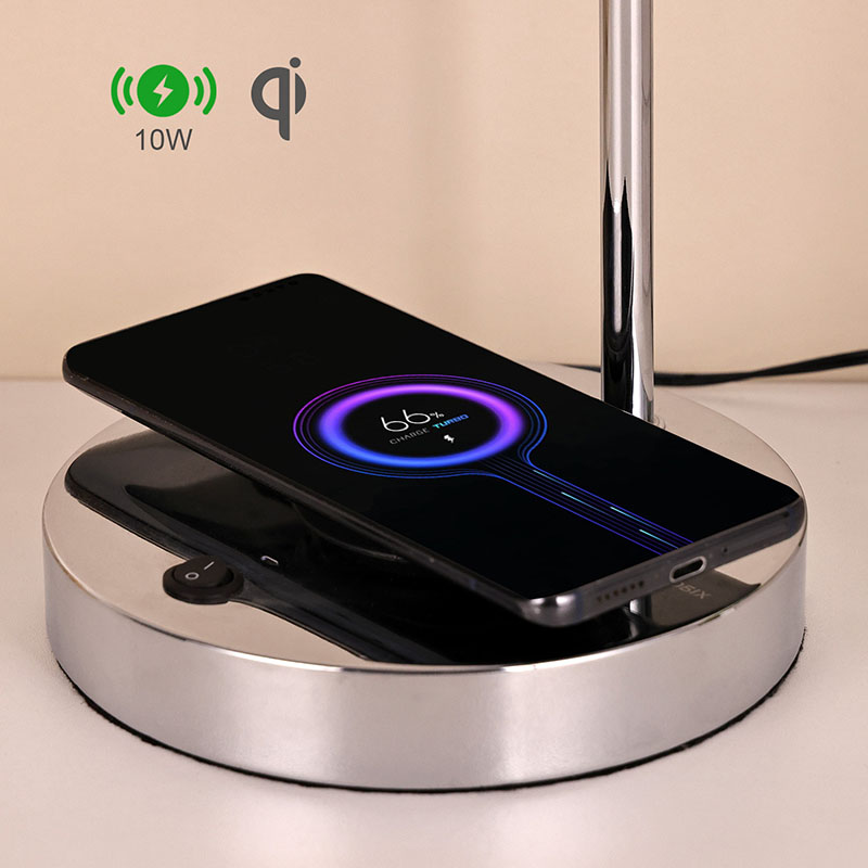 چراغ رومیزی LED QI با سایه شیشه ای دارای گواهی بی سیم QI می باشد. شارژر تلفن بی سیم 5V1A روی پایه