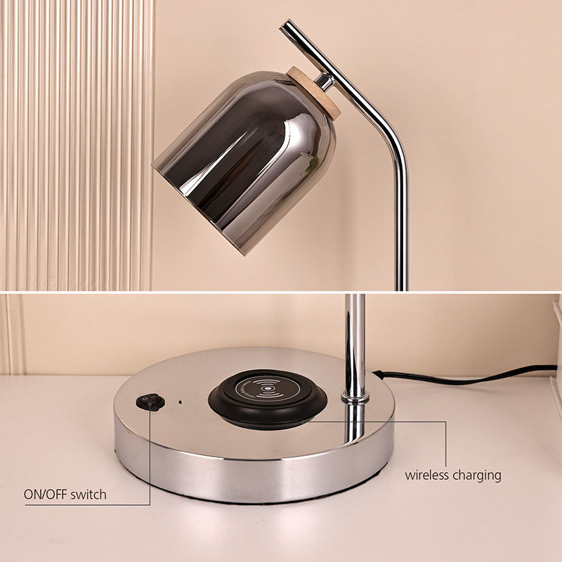 چراغ رومیزی LED QI با سایه شیشه ای با پایه و بدنه برش فلزی