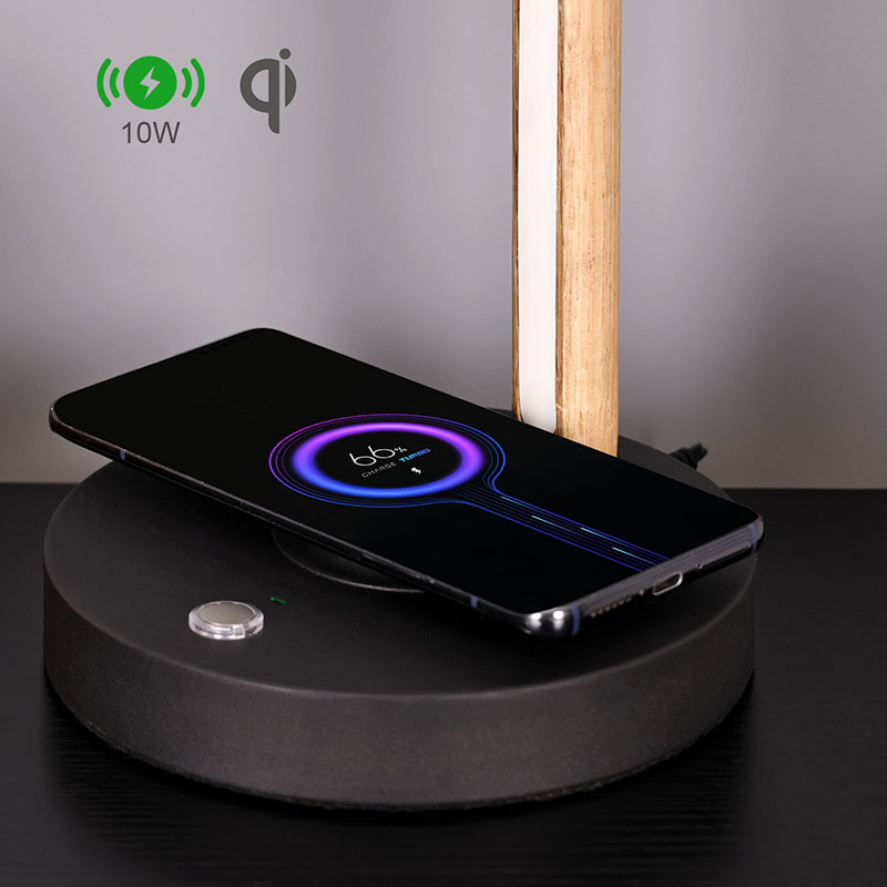 چراغ رومیزی LED بیسیم QI از جنس شیشه و مواد چوبی با کیفیت بالا، با ثبات و دوام خوب ساخته شده است. آباژور شیشه ای با سطحی صاف و لطیف و براقی نرم، به خوبی جلا داده شده است. بدنه لامپ چوبی به لامپ بافتی پایدار و اصیل می بخشد و در هنگام استفاده پایدارتر و قابل اطمینان تر می شود.