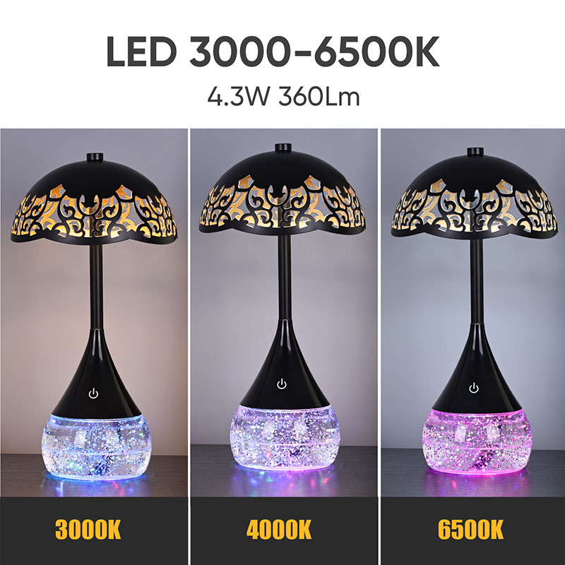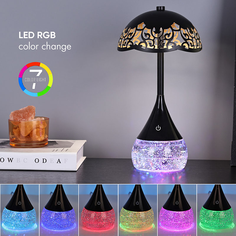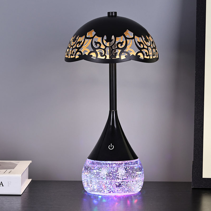LAMP DESK LED BASE COLOR RGB با درخشش واقعی شکل چتر نه تنها در پایه آن بلکه در سایه ابتکاری آن نهفته است. این سایه که از فلز با کیفیت بالا ساخته شده است ، دارای الگوهای پیچیده ای است که می تواند متناسب با ترجیحات شما تنظیم شود. این که آیا شما می خواهید یک الگوی گسترده و باز برای یک درخشش نرم و محیطی یا یک الگوی باریک و متمرکز برای نورپردازی هدفمند ، سایه با نیازهای شما سازگار باشد.