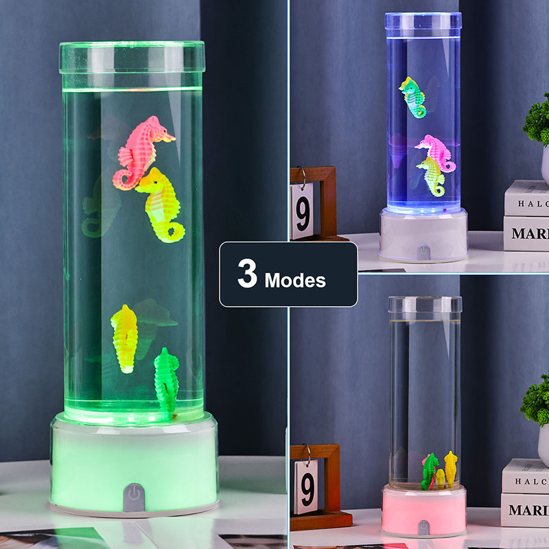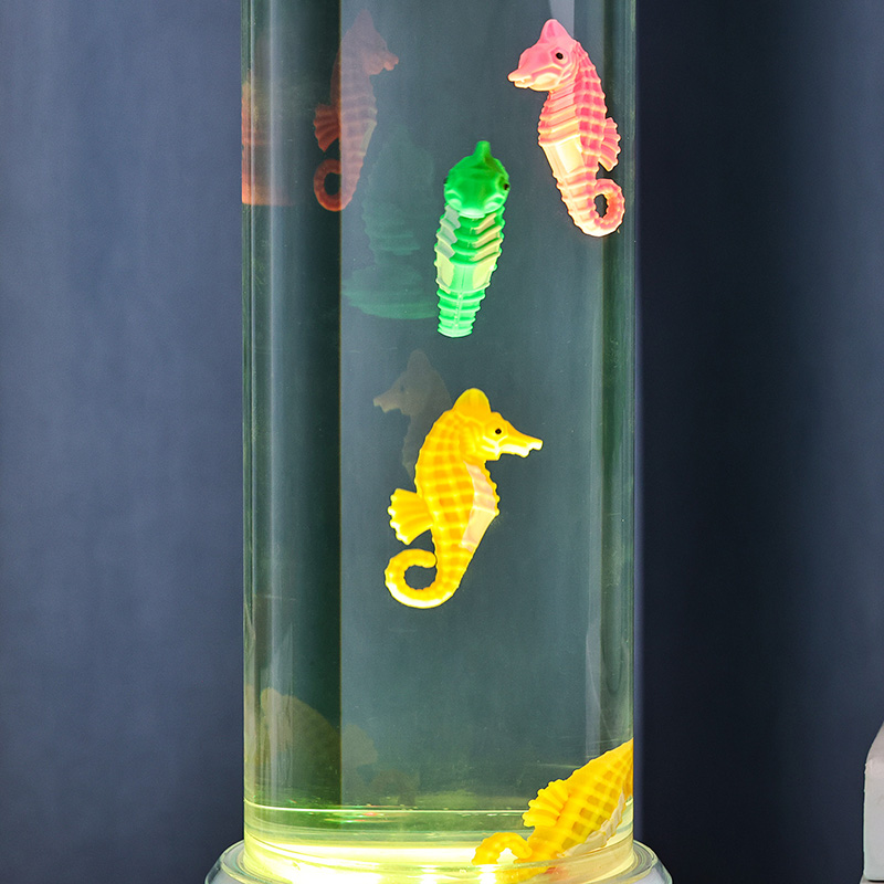 صحنه مسحورکننده زیر آب که آرامش اقیانوس را تداعی می کند کل واحد از پلاستیک بادوام با کیفیت بالا ساخته شده است که پایداری ایمنی و عملکرد طولانی مدت را تضمین می کند. لامپ تقریباً 12 اینچ ارتفاع دارد با یک لوله شفاف براق پر از مایع غیر سمی و تزئینات اسب دریایی رنگارنگ هر اسب دریایی با دقت ساخته شده است. به زیبایی درون ستون مایع که توسط یک سیستم گردش داخلی آرام نیرو می گیرد که یک حرکت طبیعی نوسانی شبیه زندگی واقعی دریا ایجاد می کند.