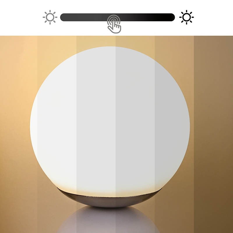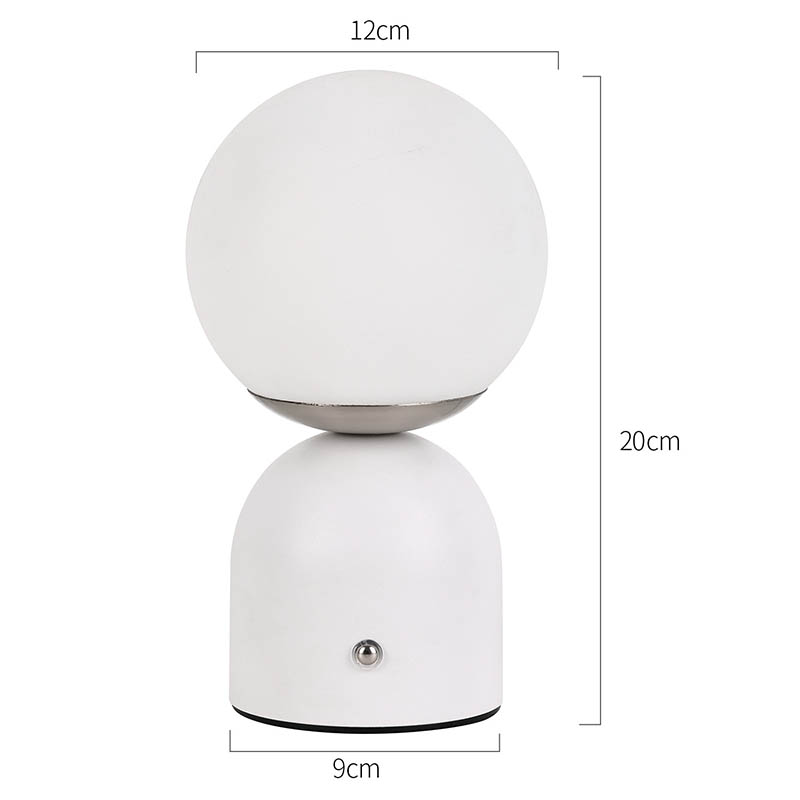 سیاه، سفیدچراغ رومیزی کوچک با باتری قابل شارژ دارای طراحی ساده، متحرک و قابل استفاده در دکوراسیون می باشد. سر از یک پوشش پلی اتیلن تشکیل شده است و نور از طریق پوشش می تابد. نور رنگ گرم بسیار ملایم است. کل طراحی کروی، قسمت پایین نیز یک طرح فلزی نیمه دست نخورده با نیمکره قوس شکل است که با یک سوئیچ لمسی برای تنظیم نور تعبیه شده است.